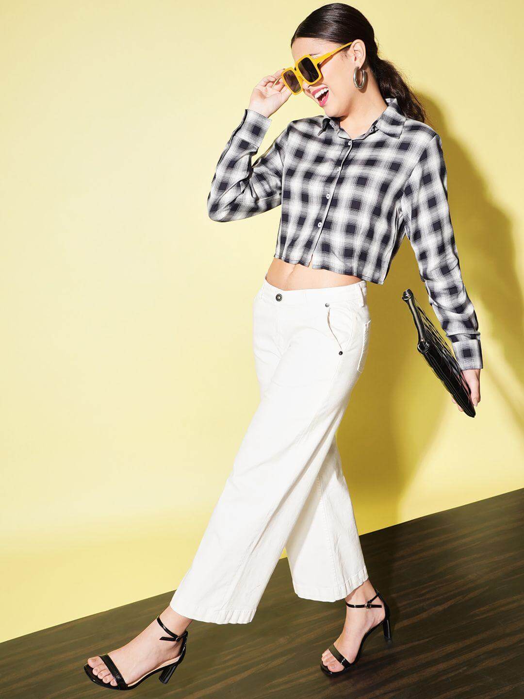 Product Description: Trend Arrest Women's Rayon Checkered Shirt Package Contains: It has 1 Piece of Shirt Fabric: Rayon Neckline: Collared Neck Sleeves: Full Sleeves Pattern: Checkered Print Color: Black 7 White Style: Regular Size: S, M, L, XL Brand: Trend Arrest Weight : 200 It's crafted from lightweight rayon material that drapes elegantly on your curves and is comfortable to wear during any season.