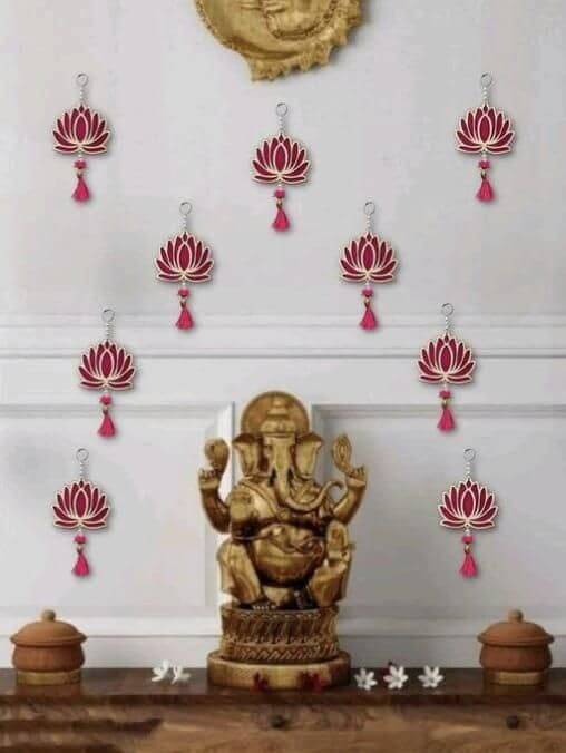 Product Name: Lotus Hanging 10 Pcs|MDF Floral Wall Hangings For Decor Package Contains: It has 10 Piece of Lotus Hanging Materials: MDF Wood Length: 7 Breadth: 4 Height: 3 Combo/Set Of: Pack of 12 Additional Information: Showpieces for Stage Decor|Handmade Wall Decoration Lotus with jhumki Style Hanging for Home Decor,Diwali & All Festival D�cor |4 Inch| Weight: 100