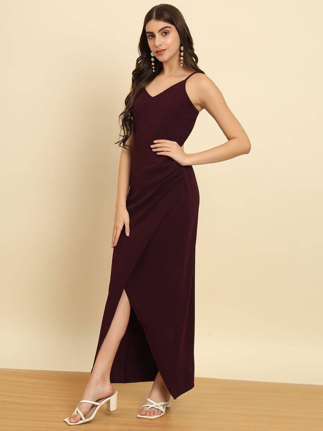 Product Name: TRENDARREST Burgundy Split Thigh Dress