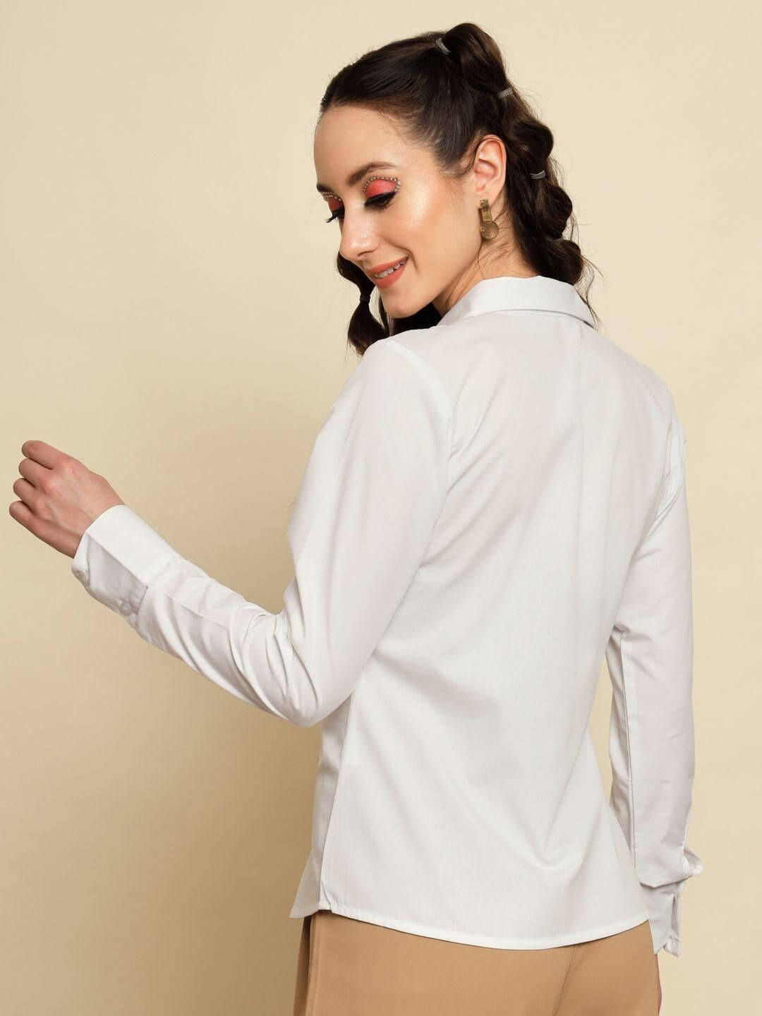 Product Name: TRENDARREST Women's White Gather Detail Shirt