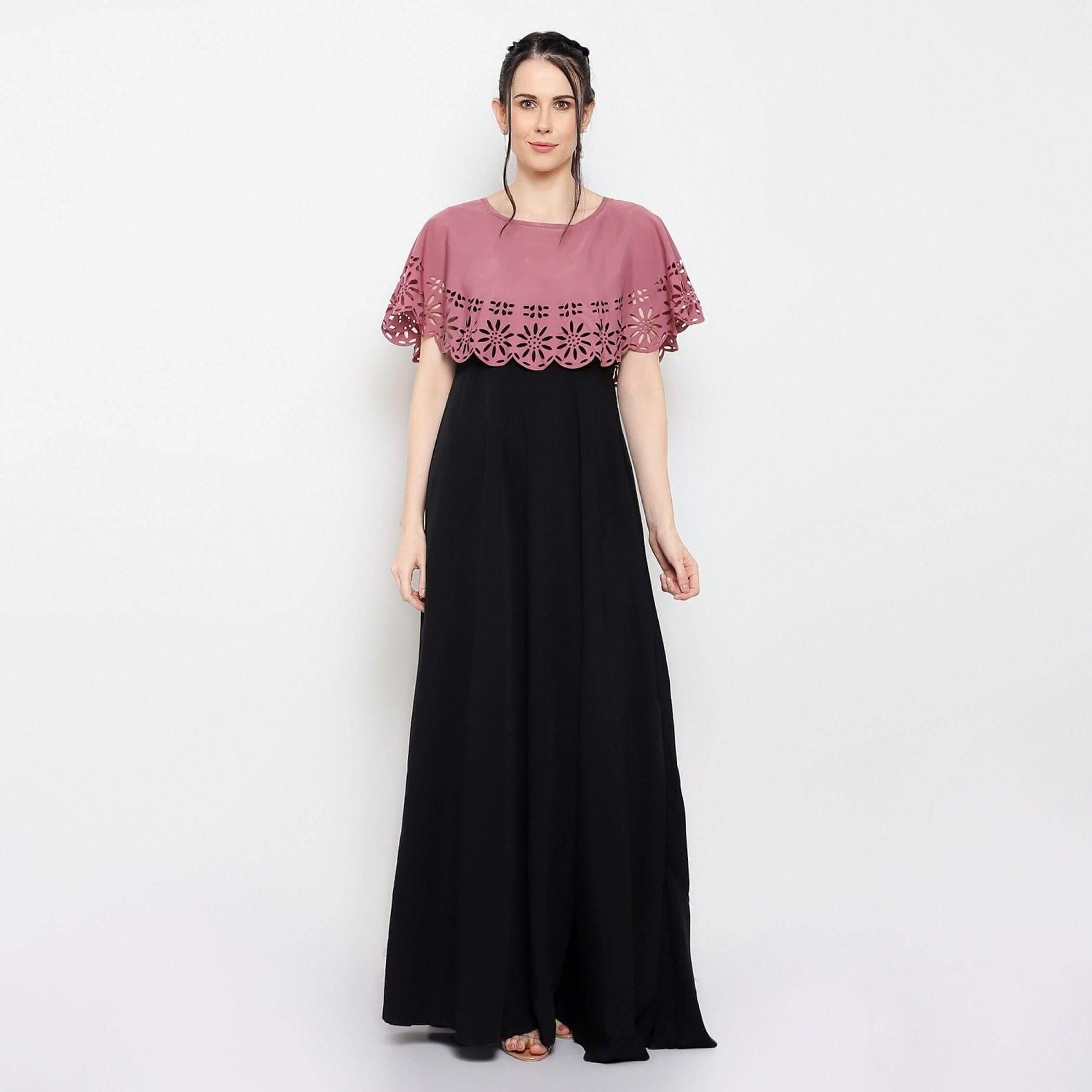 Product Name: Women's Crepe Solid Maxi Dress Package Contains: 1 Piece Of Maxi Dress Fabric: Crepe Color: Pink Pattern: Solid Style: Maxi Occasion: Casual Combo Of: Pack of 1 Sleeve Length: Cape Sleeves Wash: Hand Neck Type: Round Neck Weight: 200