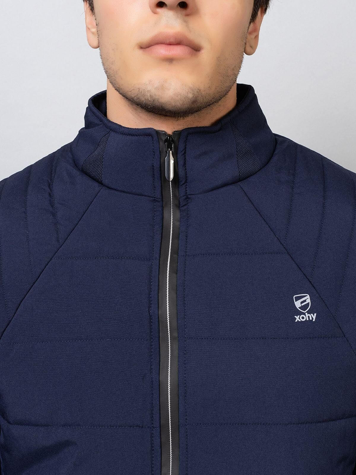 Xohy Men's Full Sleeve Puffer Sportwear Navy Jacket